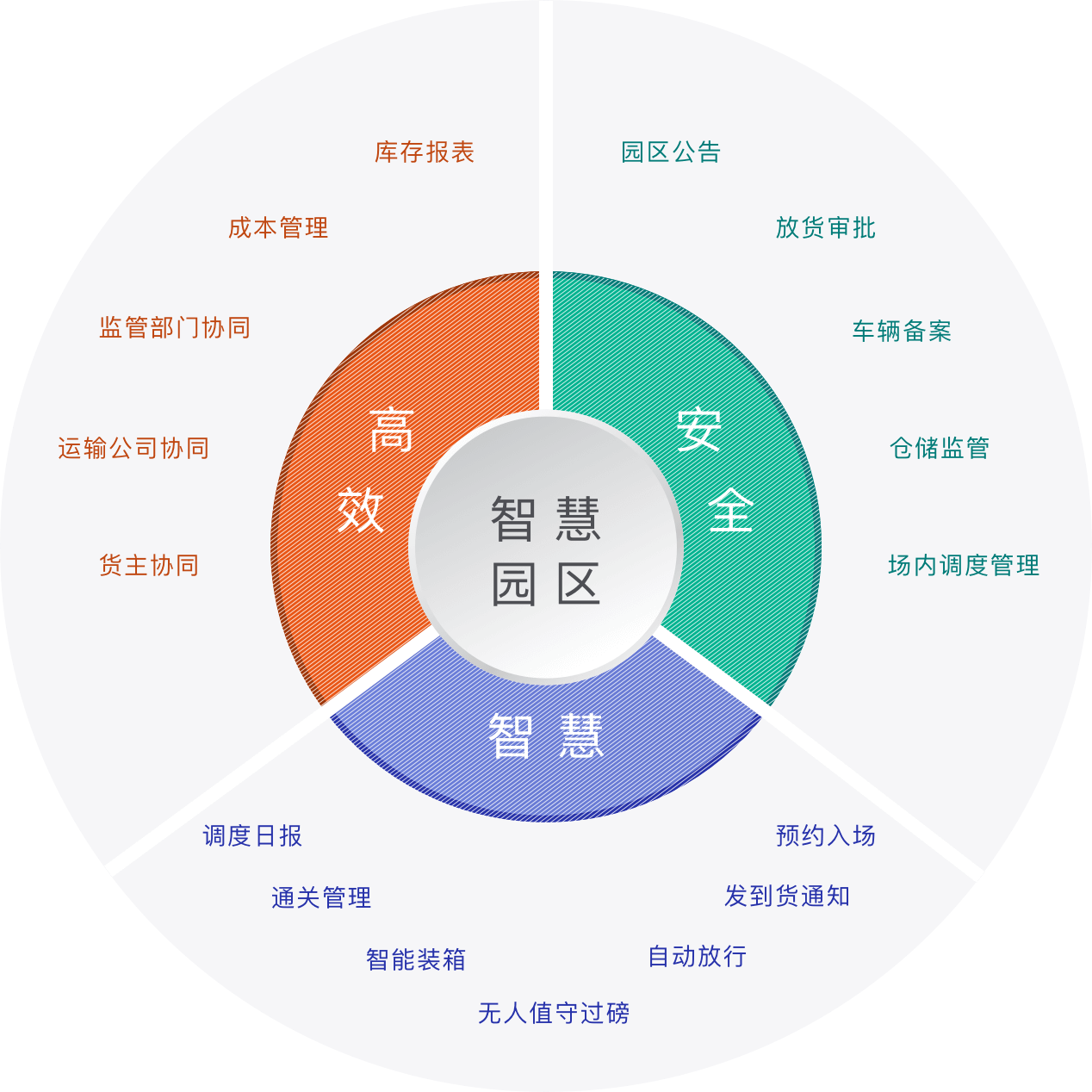 将物联网、AI等技术手段,充分应用到整个物流作业、运输服务及园区管理中去,提供SaaS平台,实现集运输、仓库、检验检疫、海关监管等方面的智能化与协同化,打破信息孤岛,提升监管标准。